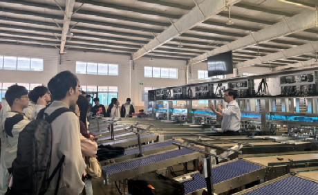 随后,研学队伍进入了本次活动的核心环节——实地参观成套自动化养鸡设备生产线。从集约化养鸡平台,到可实时监测禽类健康的巡检机器人,再到高效精准的自动化集蛋系统,以及最后端的全自动鸡蛋包装处理设备,黄总工程师沿着完整的生产链条,为同学们逐一深入讲解了每套设备的功能结构、技术难点与实现原理。