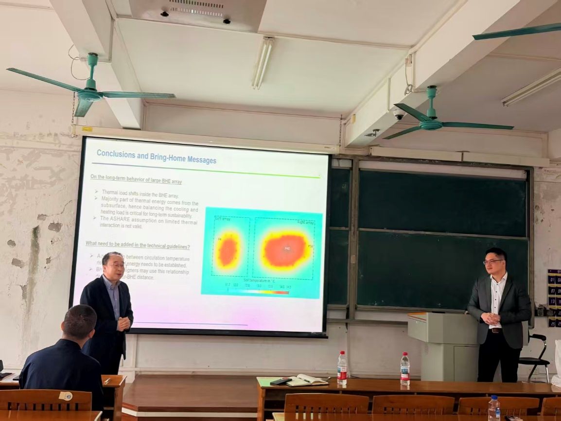 邵亥冰结合自己的研究领域和工作经历,以《OpenGeosys 软件在能源和环境问题研究中的应用》为题,为bevictor伟德师生分享了一场受益匪浅的专业报告。报告分为两部分。第一部分,邵博士介绍了OpenGeosys软件在地源热泵技术中的应用,该软件可以精确模拟土壤中地下换热器周围的温度场演化过程,计算换热量并分析相关的影响因素。第二部分,邵博士以自身参加中国西藏羊易地热田发电项目的经历为背景,介绍了典型高温水热型地热发电的相关技术现状以及存在的问题。报告深入浅出、资料详实、紧贴实际,给相关专业领域的师生极大的启发,也扩展了能源系教师的研究思路。在讨论环节,丁力行教授和邵博士就地源热泵技术的有关问题进行了深入交流。